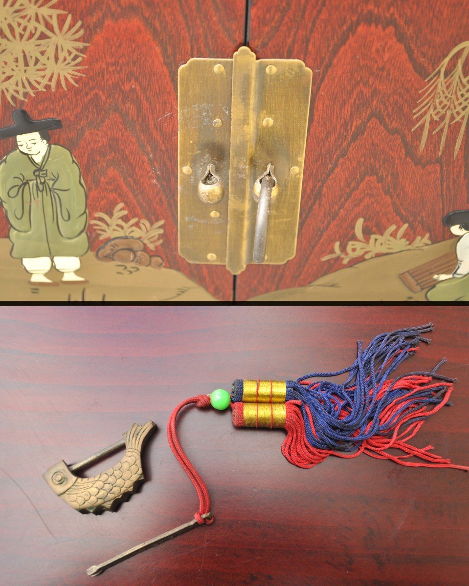 | ▼商品名 | 飾り箪笥 李朝風 鍵つき たんす タンス 時代タンス 約W600×D320×H900 引き出し 物入れ チェスト インテリア レトロ 骨董 アンティーク |