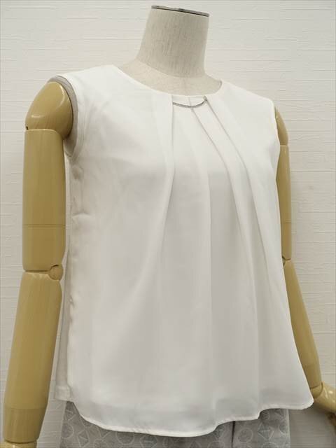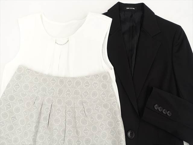 長袖テーラードジャケット+ノースリーブプルオーバーブラウス+ひざ丈タックスカート コーディネート上下3点セット S相当 ブラック/ホワイト/シルバー 総柄 きれいめ・シンプル系 20代~30代