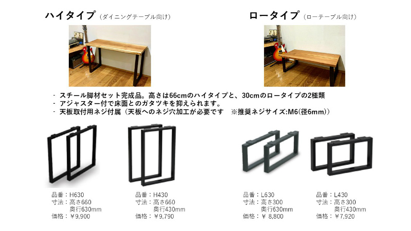 ¥7,700(税別¥7,000) (オプションの脚材セットを取り付けるための雌ナットを天板に16か所埋め込みます)※脚材の位置は指定できません |