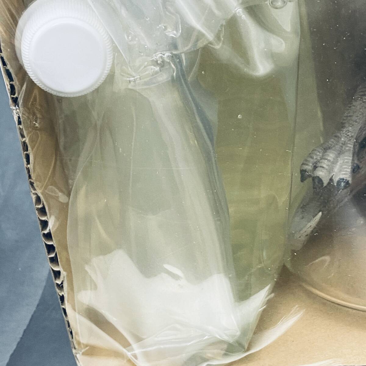 瓶は固いですがフィルム越しの確認のためガラスかプラか不明です