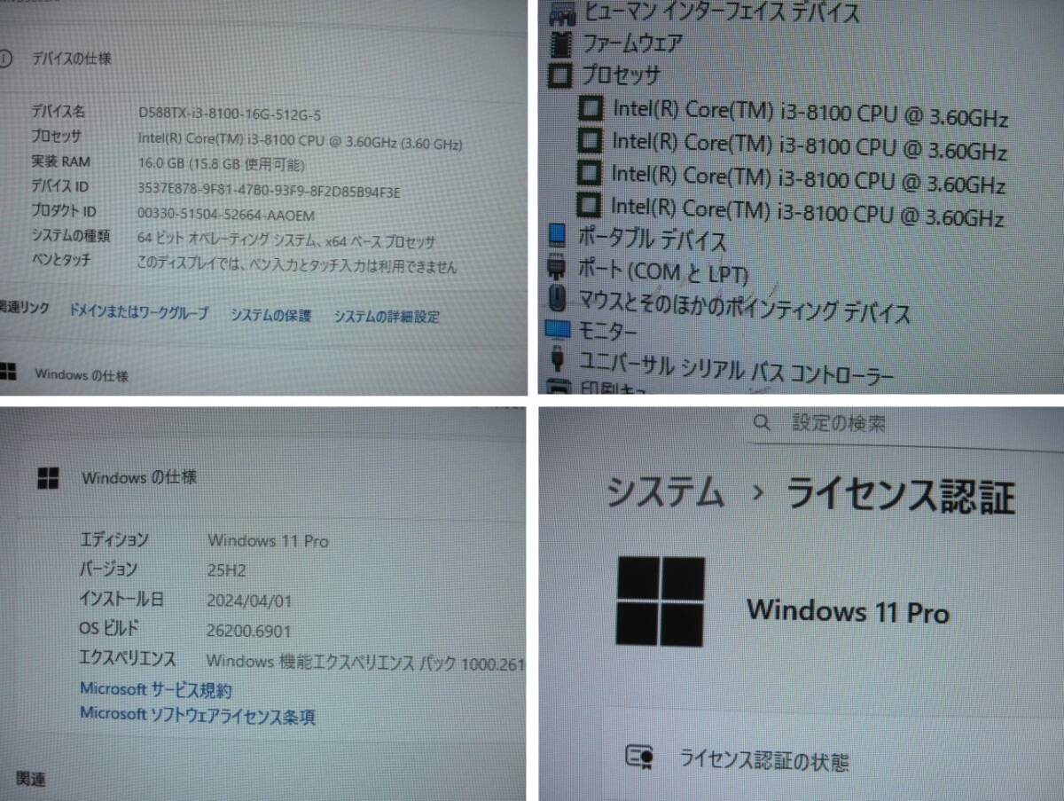 No.5富士通D588VX/i3-8100-16G-512G-サブ/500G/office2024