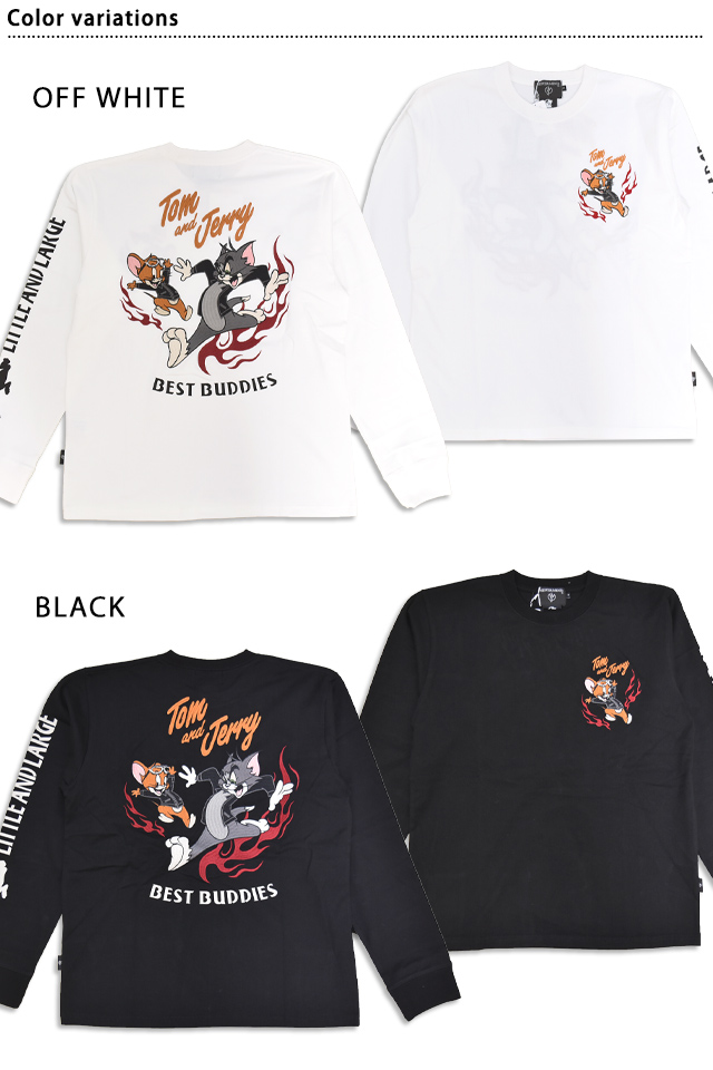 「TOM&JERRY×ネバーマインド 天竺ロングTシャツ(TJN-2603)」のご紹介です。 体が大きく凶暴だが、おっちょこちょいでどこか憎めない部分のある猫のトムと、体は小さいが頭脳明晰で、追い掛けてくるトムをことも無げにさらりとかわすネズミのジェリーのドタバタを、ナンセンスとユーモアたっぷりに描いたアニメ作品をモチーフにしました。 今回は炎を纏ったトムとジェリーを背中に刺繍しました。 絵柄上部のロゴは刺繍、絵柄下のロゴはプリントで表現。 フロント左胸には、ジェリーをワンポイントで刺繍。 左袖には「LITTLE AND LARGE」のロゴと共に、ジェリーを追い掛けるトムをシルエットでプリントしました。 ボディーには、ややしっかりとした刺繍に負けない強さを持ったTシャツ生地を採用。 襟元、袖口にはリブを配置しました。 カジュアルに着こなしに取り入れることの出来る、大人のキャラクターアイテムです。 | |||||||||||||||||||||||||