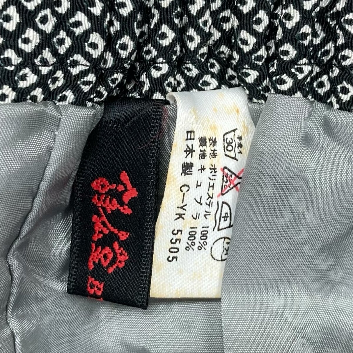 詩仙堂 洗えるちりめん織りウエストゴム鹿の子柄バックスリットスカート 黒白 oe038