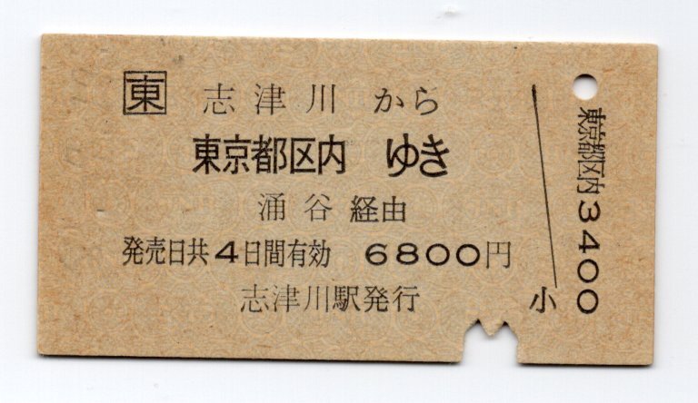 JR東 気仙沼線 志津川から 東京都区内ゆき 乗車券 S?年薄い