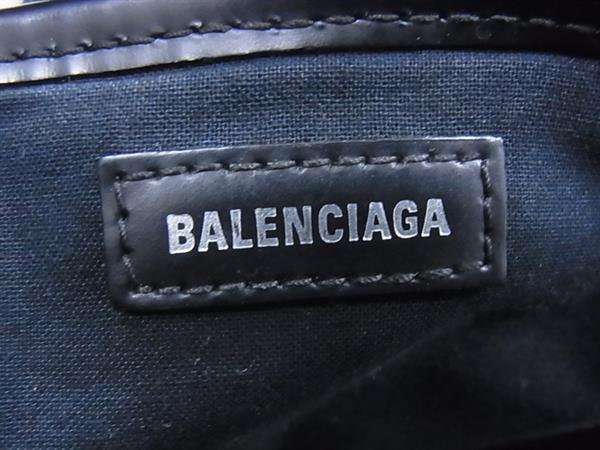 1円 BALENCIAGA バレンシアガ 339933 ネイビーカバスS キャンバス ポーチ付き ハンドバッグ トート アイボリー系×ブラック系 FT3960
