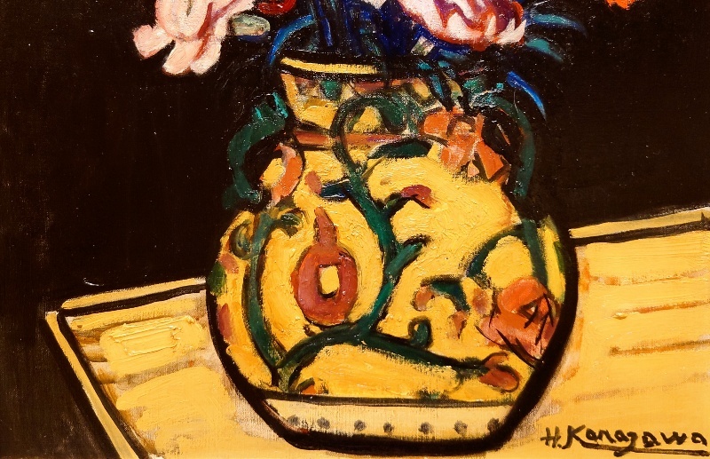 東京美術学校やパリのアカデミー・ランソンでも絵を学び日展評議員、光風会会員などでご活躍された秋田県の洋画家、金澤秀之助の貴重作品です。