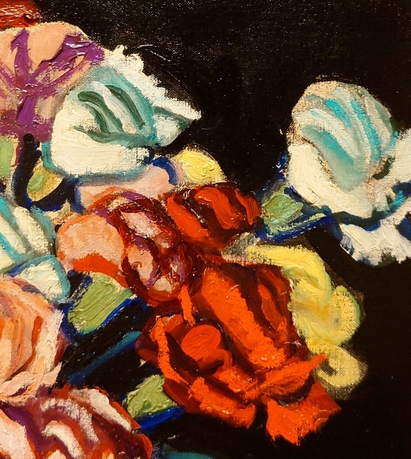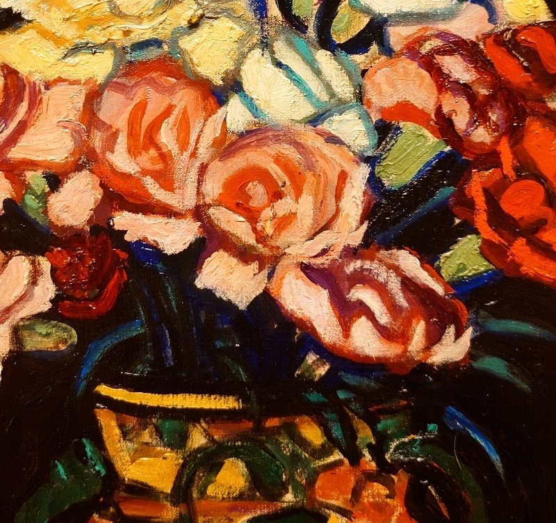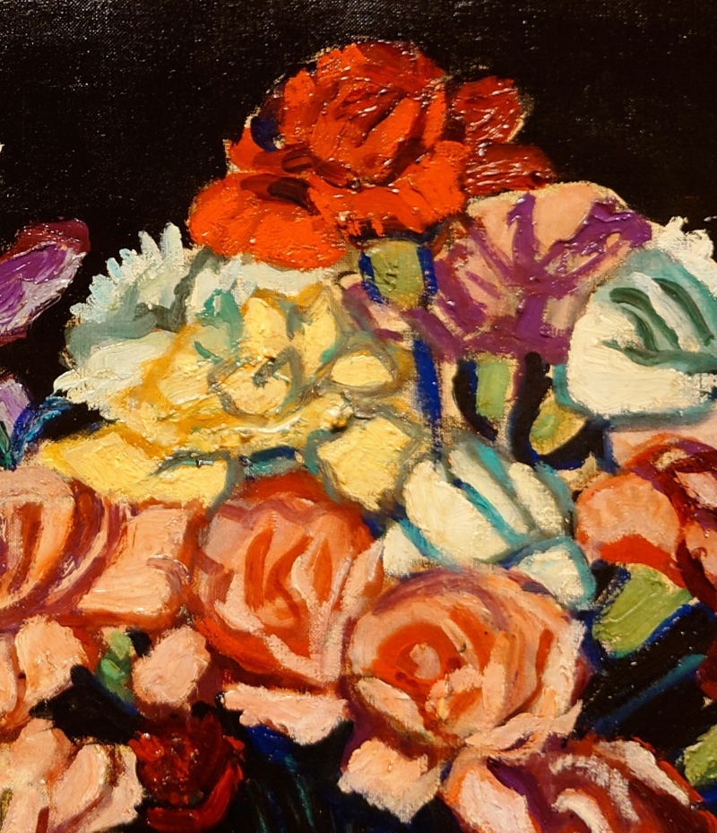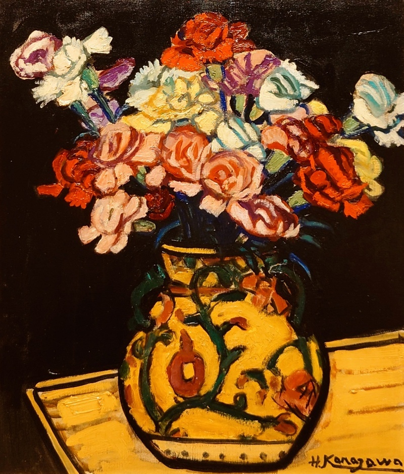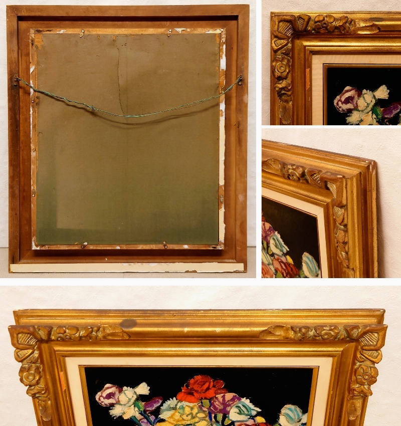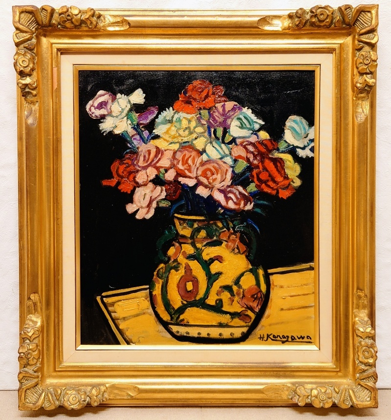 真作保証 金澤秀之助「花」油彩 10号 共シール 日展評議員 光風会会員 従軍画家 十柯会結成 貴重作 ※金沢秀之助 薔薇 バラ