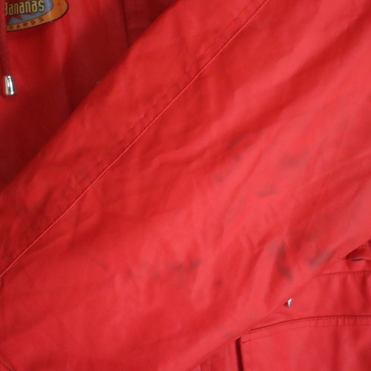X3O/O9.5-5 LEISURF WEAR JUST BANANAS SURF BOARDS PVCジャケット ファイヤーマンジャケット 裏キルティング 収納フード メンズ