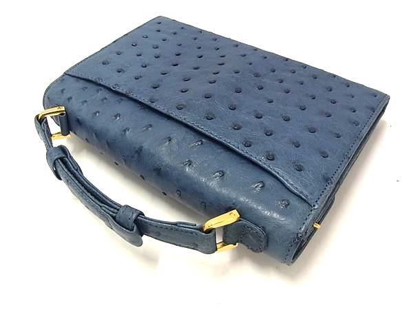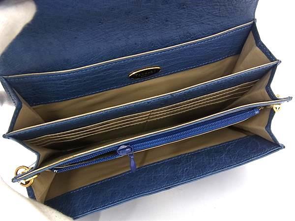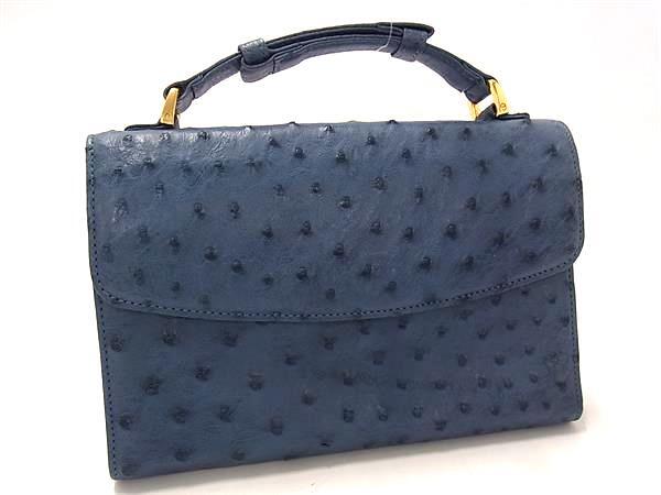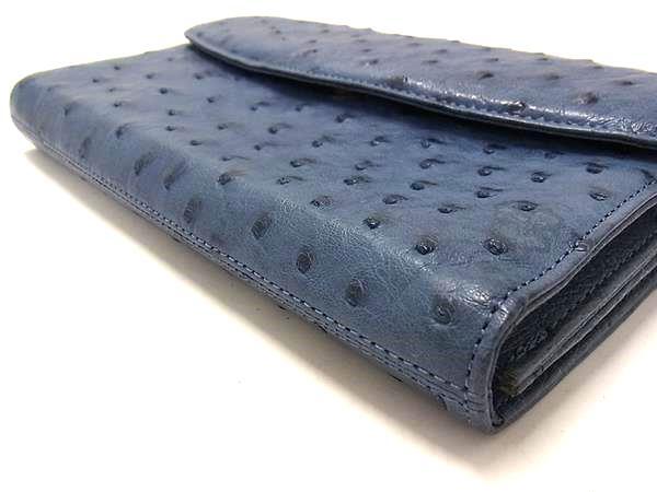 1円 ■極上■本物■美品■ Takechi タケチ オーストリッチ ワンハンドル ハンドバッグ ウォレット 長財布 レディース ブルー系 FW0091