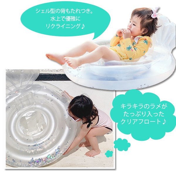 ☆クリアシェルフロート 足穴タイプ / O型タイプ ※ご購入されましたらオーダーフォームに以下のタイプをご連絡ください。 【タイプ】 足穴タイプ:1~4才 O型タイプ:5~9才 【商品名】 クリアシェルフロート 足穴タイプ / O型タイプ 【商品説明】 キラキラのラメ入り♪シェル型の背もたれがおしゃれなフロートです。 水上に浮かびながら優雅にリクライニングができちゃう♪ 小さなお子様でも安心! 落下防止の足穴タイプと 水慣れしたお子様が自由に泳げるO型タイプの2種類展開! 【サイズ】 足穴タイプ:直径約65cm / 内径約27cm / 高さ約30cm O型タイプ:直径約62cm / 内径23cm / 高さ約30cm ※海外輸入品につき多少の誤差が生じる場合がございます。予めご了承ください。 【対象年齢】 足穴タイプ:1~4才 O型タイプ:5~9才 ※対象年齢は目安となります。体格などで個人差が出る場合がございます。予めご了承ください。 ※メーカー表記サイズですが多少の誤差が生じる場合がございます。予めご了承ください。 ※空気を入れると多少寸法は小さくなります。 【対象年齢】 2歳以上 キーワード 【 水慣れ 透明 背もたれ付き おしゃれ インスタ映え SNS映え うきわ 足入れ O字 足穴 落下防止 落ちない 安全 海水浴 旅行 水泳 かわいい マリン 幼児 赤ちゃん用 子供用 プール用品 ビーチ 】 |