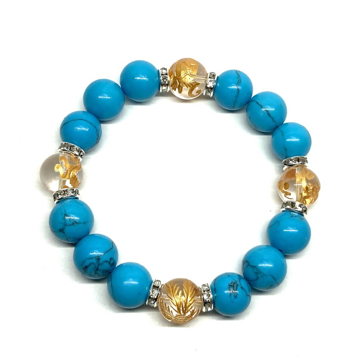 四神獣金彫水晶×ターコイズ 12mm パワーストーン ブレスレット青龍 白虎 玄武 朱雀 運気上昇 お守り 金運 健康運 四神獸 四神相応 S