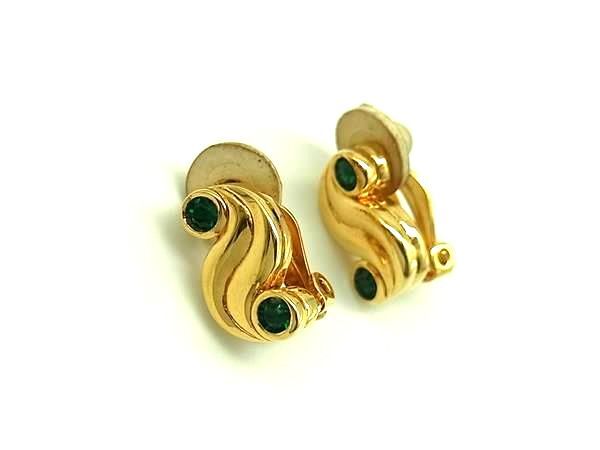 ■美品■ NINA RICCI ニナリッチ クリップ式 イヤリング アクセサリー レディース ゴールド系×グリーン系 DJ5239