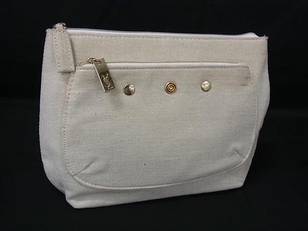 YVESSAINTLAURENT イヴサンローラン キャンバス マルチポーチ マルチケース 小物入れ ライトベージュ系×ゴールド系 DI6001