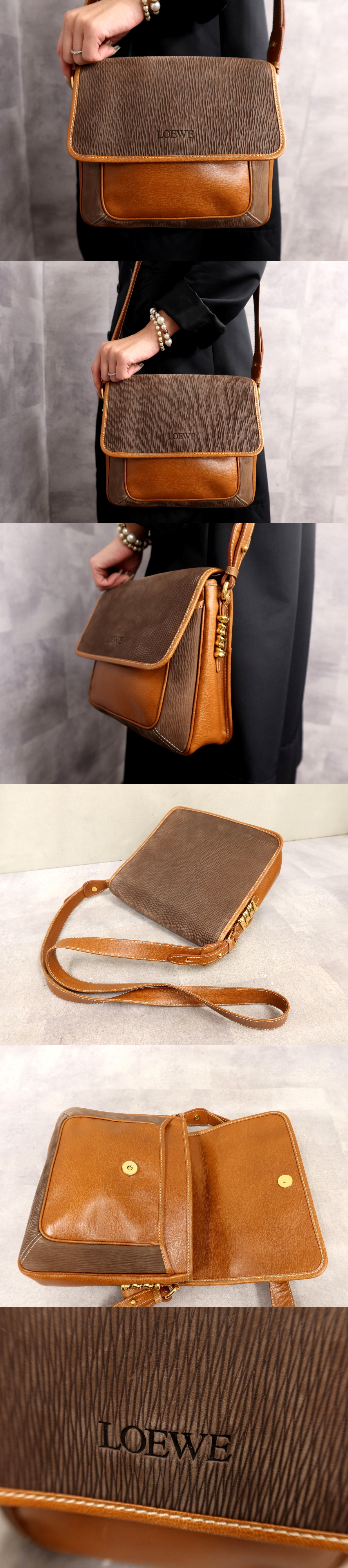 ●超美品●LOEWE ロエベ●スエード カーフ レザー 本革●ショルダー バッグ●キャメル ブラウン●ゴールド金具●ヴィンテージ●Js63596