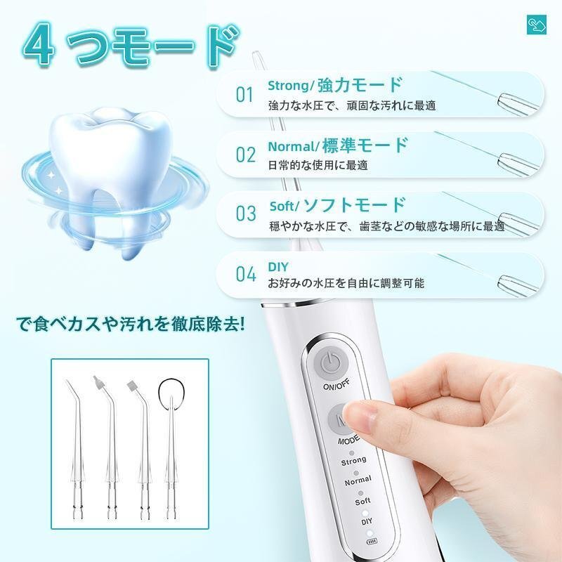 口腔洗浄器 2025最新 歯垢除去 超音波ジェットウォッシャー 口腔洗浄機 4つモード 300ML IPX7防水 携帯 歯間ジェット 家庭用 zchw0134.bk