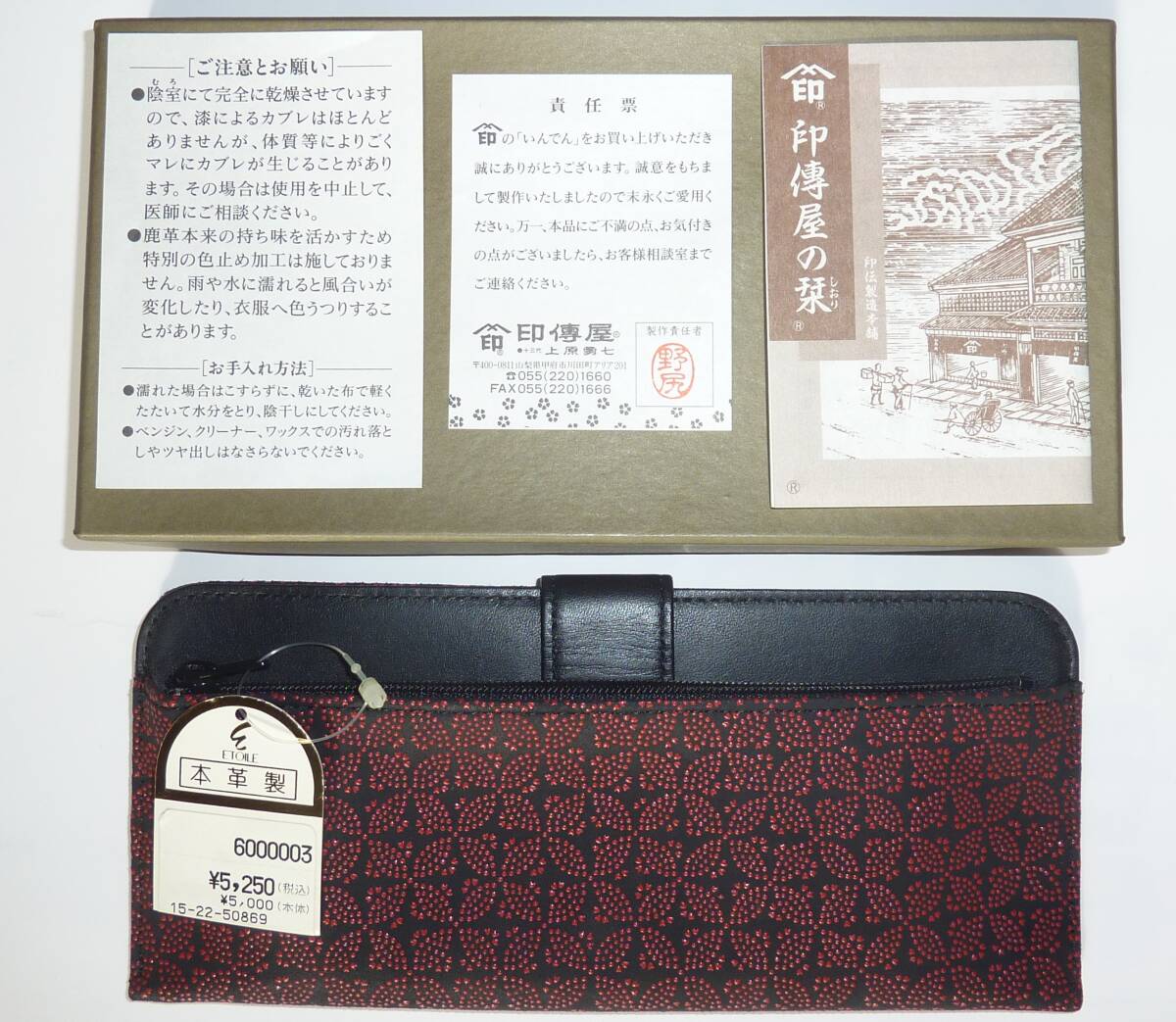 【未使用/タグ付】●印傳屋(INDEN-YA) スリム 長財布 チャック小銭入れ付● 鹿革 伝統工芸品 漆 レザー いんでん 日本製 *送料230円