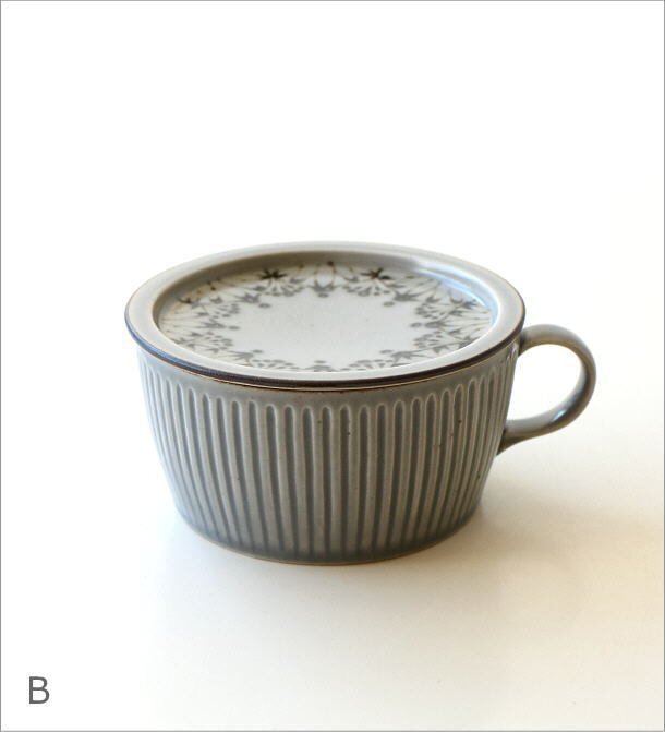 | こちらのページでは【Bカラー】のみの販売です 外側に細いラインの鎬模様と 内側に付いたダマスク模様が エキゾチックな雰囲気の スープカップです スープが冷めないよう 浅めの蓋が付いていて ソーサーとして使ったり 薬味等を入れて小皿に使っても・・・。 商品名 : ダマスクフラワー蓋付きスープカップ 商品番号 : msg4026 全体サイズ(cm) : 幅14×奥行12×高さ6.5 サイズ(cm) : 口径11.5×深さ6.5 蓋サイズ : 直径12×高さ1.5 容量 : 360cc 重量 : 400g 材質 : 陶器 使用方法 : 電子レンジ)〇 食洗機)〇 オーブン)× 生産国 : 日本 (有田) ※陶器の裏面は多少ざらざらとしているためテーブル等の擦り傷にご注意ください -陶器(土物)の特性とお願い- 土物は同じ技法、同じ窯で焼成しても土や釉薬に含まれる天然鉱物などの影響や天候で焼き上がりは微妙に異なります。工業製品のように同一の物になる事はありません。手作りの不均一性、窯変、釉薬の細かいヒビ(貫入)や垂れ等は、製造元より土物の特性として良品の扱いとなります。ご理解頂きお買い求めくださいますようお願い申し上げます |