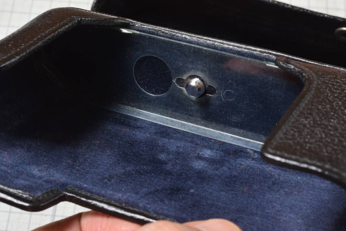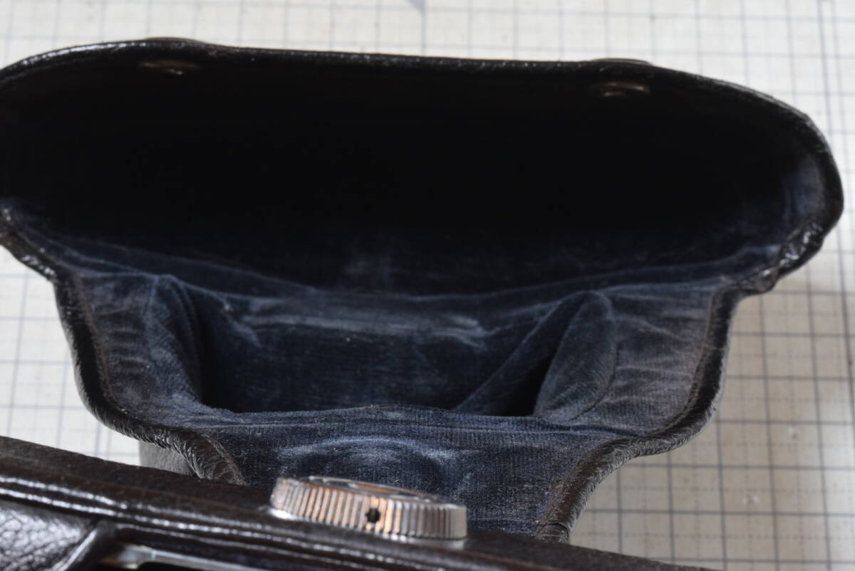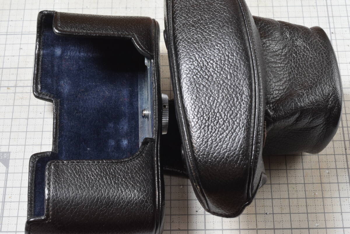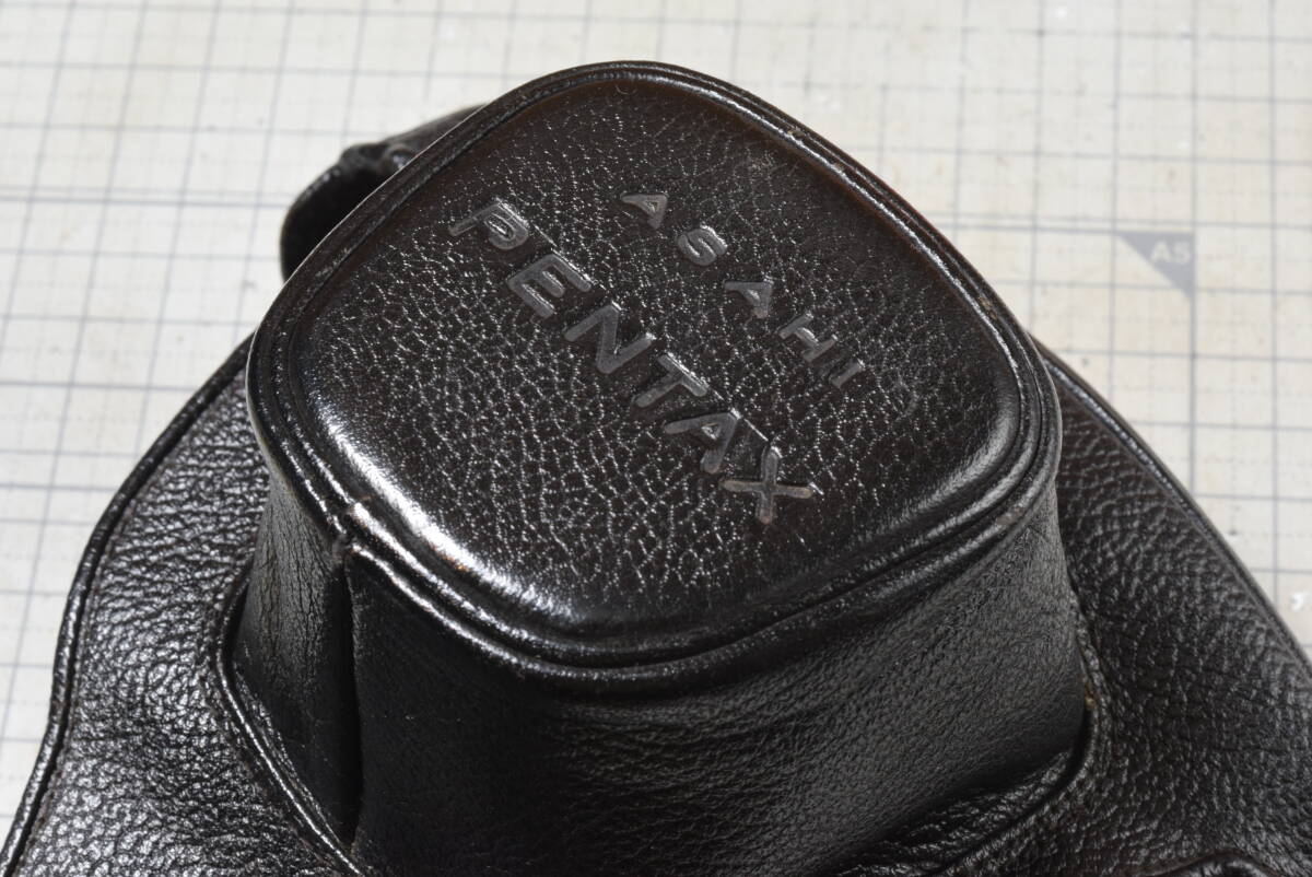 #5 古い革製カメラケース PENTAX SV/S2など(前面にセルフタイマーが無い機種) 珍しい底部保護シートが残っています