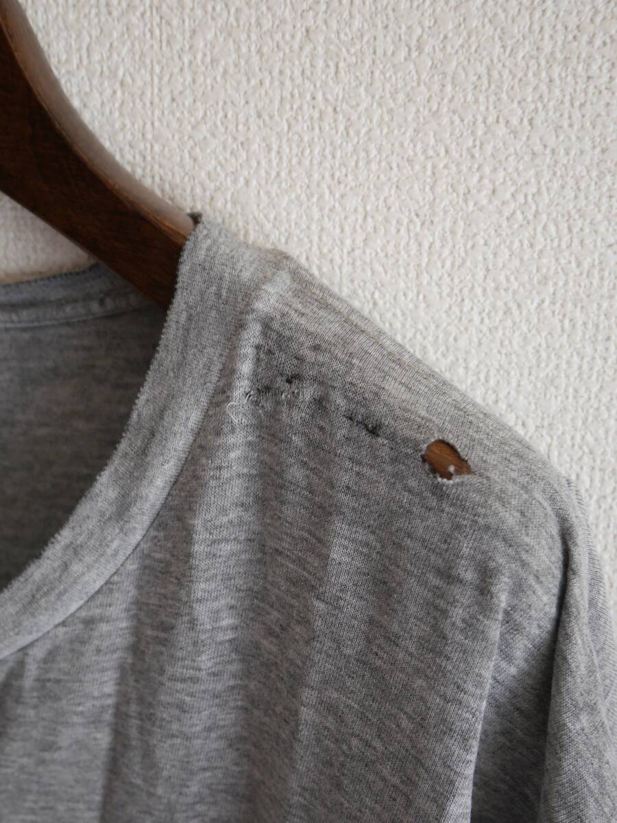 肩と背面の襟付近に穴、生地が薄くなっている箇所があります。