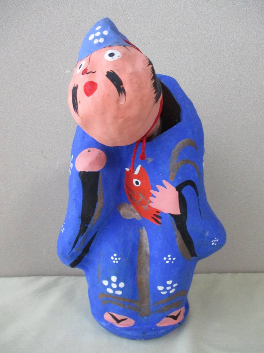 首振り張り子の恵比寿人形(面首振人形虎だるま、春日部張子細工、五十嵐健二作): 張り子・恵比須・郷土玩具・縁起物・七福神・置物