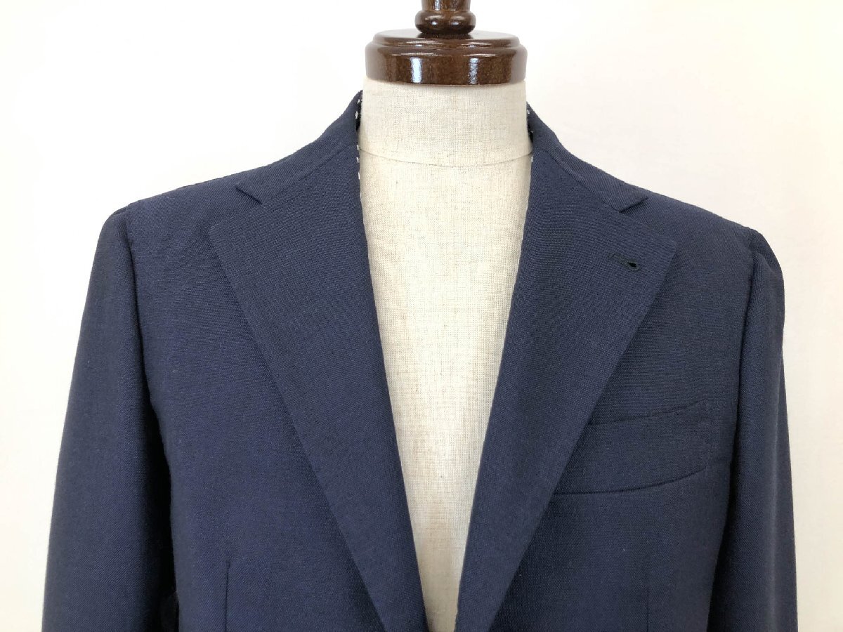 HH未使用【ALFONSO SIRICA アルフォンソシリカ】英国製ダグデール生地 モヘア×毛 3B段返り シャンブレー ジャケット(メンズ)46紺17MB4861
