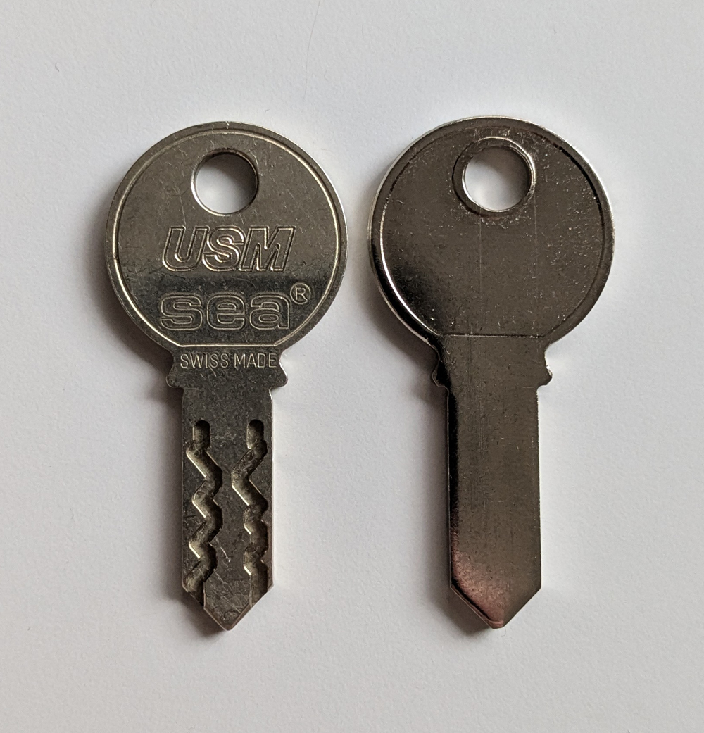 USMハラーの合鍵作成用のベースキーになります。USMハラーの鍵のベースキーなどは国内にはほとんど無いと思いますのでUSMハラーの鍵を紛失したなどでお困りの方には良いかと思います。USMハラーの鍵を紛失したなどの際に合鍵作成時に必要なベースキーとなりますので、ご自身のお近くの合鍵作成屋さんなどで合鍵作成を依頼して下さい。