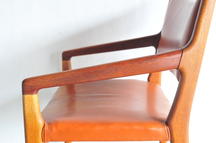 Hans J.Wegner デザイン "Magasin du Nord" 商業施設-デパートの為にデザイン・納められたお品。ウェグナー黄金期の50年代、製造は最もクオリティー良いとされるヨハネス・ハンセン社。書籍 ”wegner just one good chair P-62” 掲載記述されております。当時市販はされておりません。オーダー品の大変貴重なモデルとなります。ひじ掛けのみチーク材・その他オーク材使用、連結金具の為の側面の穴加工など当時の図面と同じ処理がされております。当時のオリジナルの状態を保ちました当時のままの状態となります。
