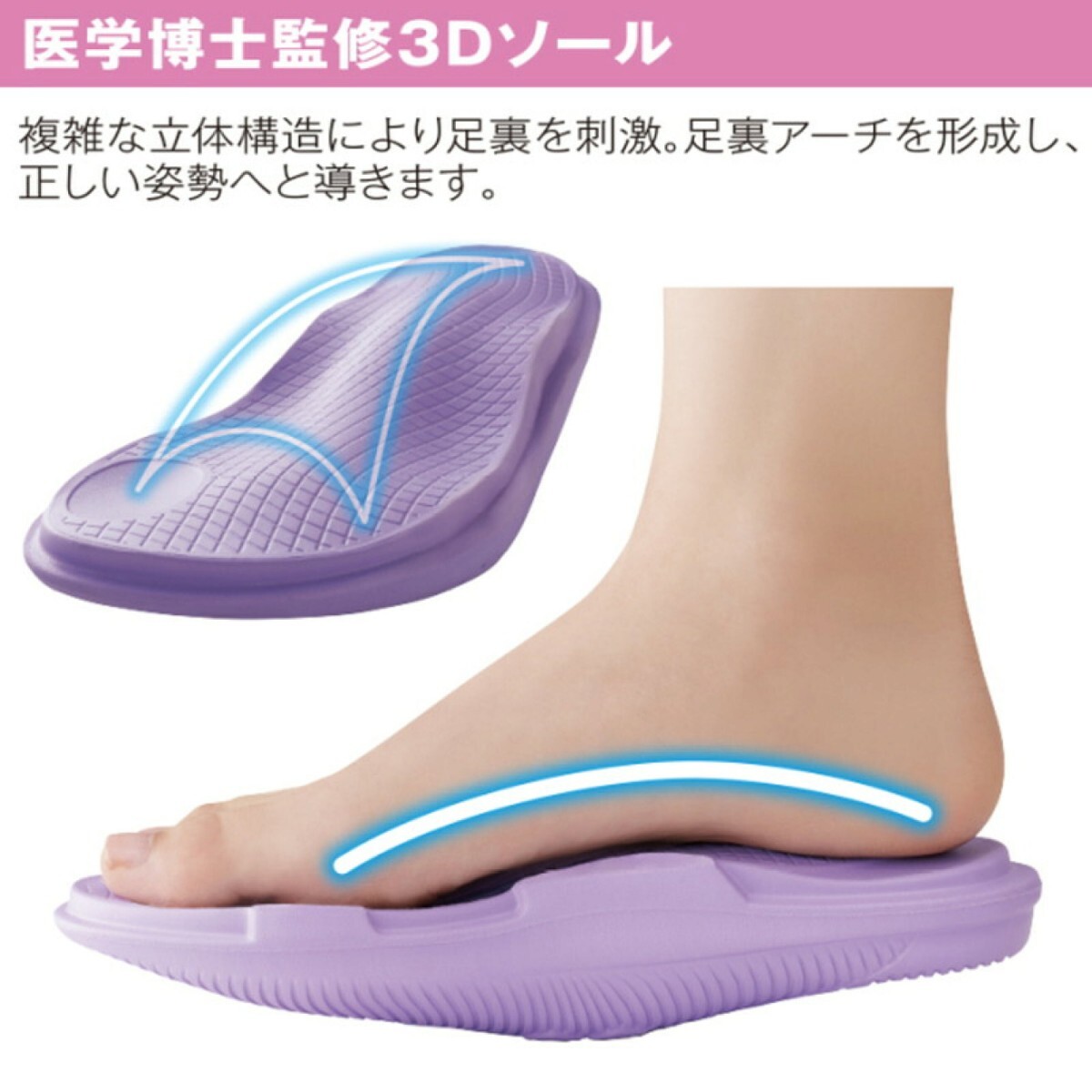 ・アーチサポート形状が足裏(土踏まず)を持ち上げ脚の悩みをサポートします。