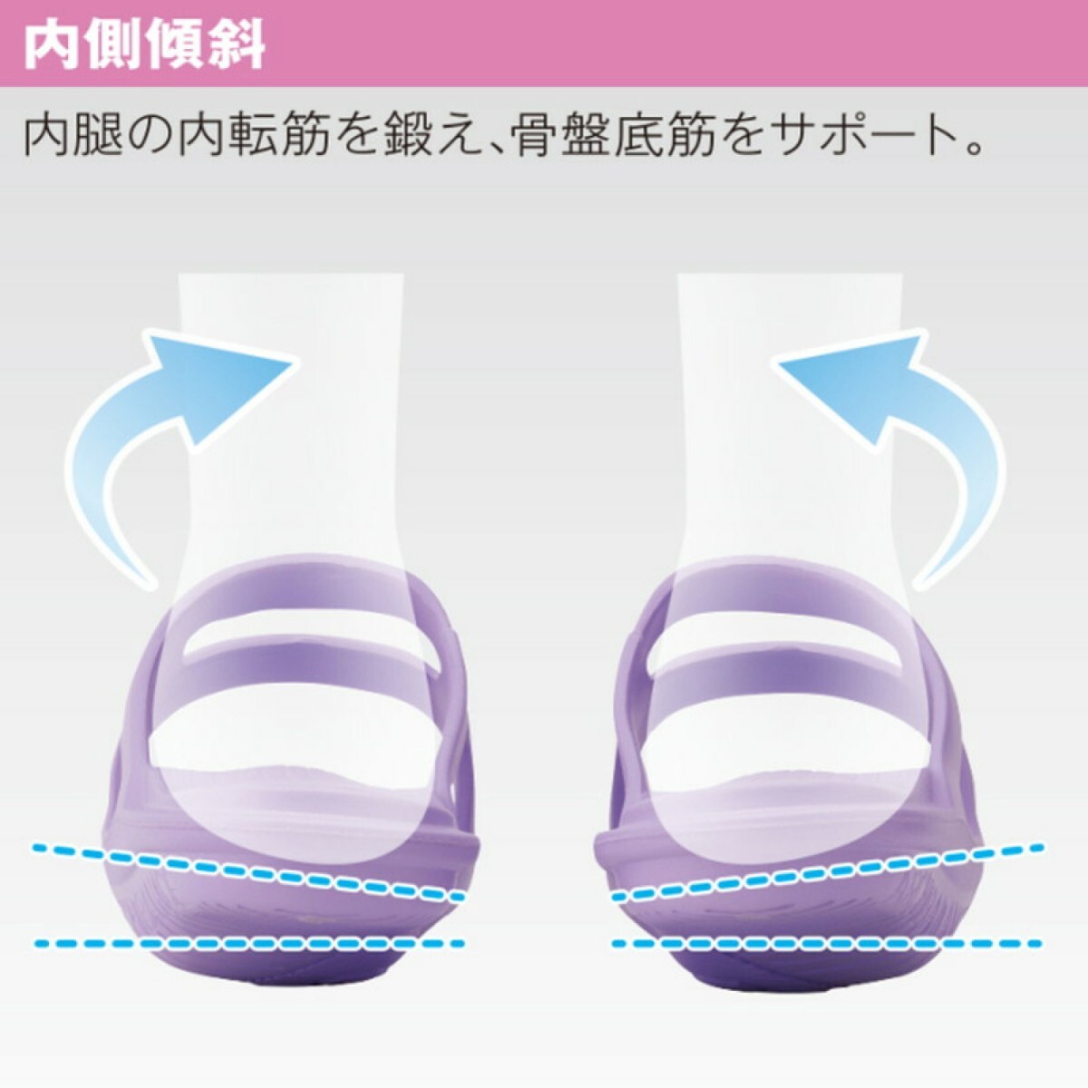 ・かかと、内側を意識することで「かかと傾斜」、「内側傾斜」が体感でき、筋肉に負荷をかけます。