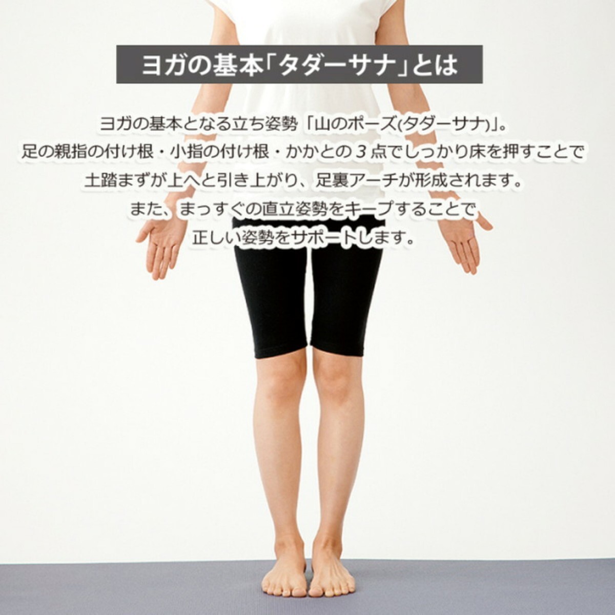 ・履くことでヨガの基本となる「タダーサナ」の立ち方が自然と身につきます。