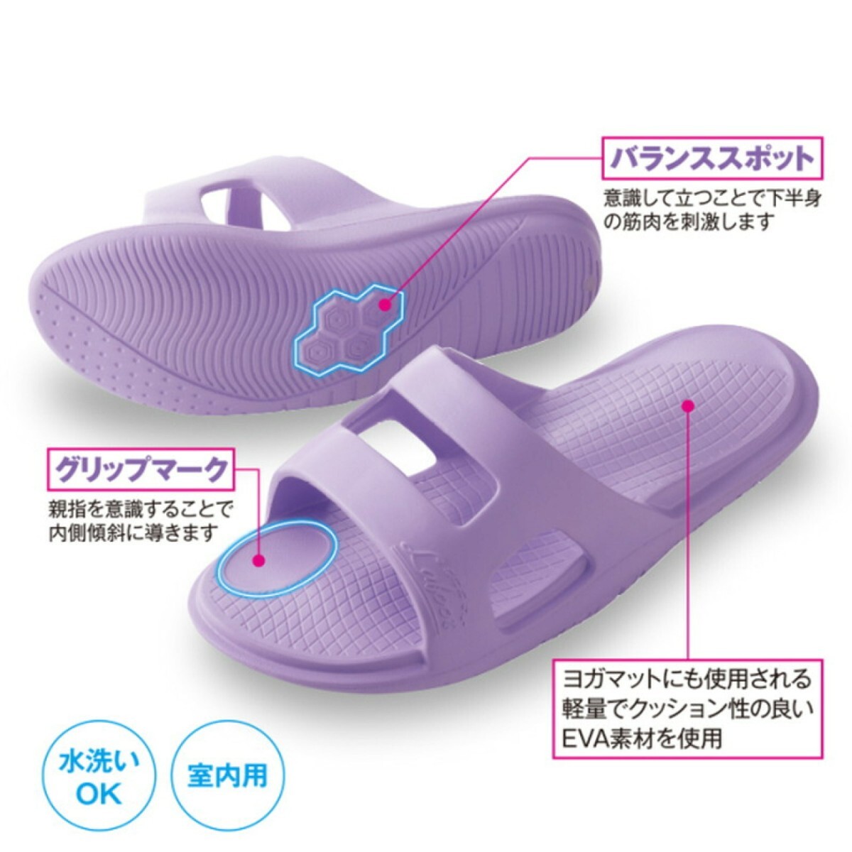 柔らかく、軽量素材(EVA)なので履き心地も最適。水洗いができて清潔!