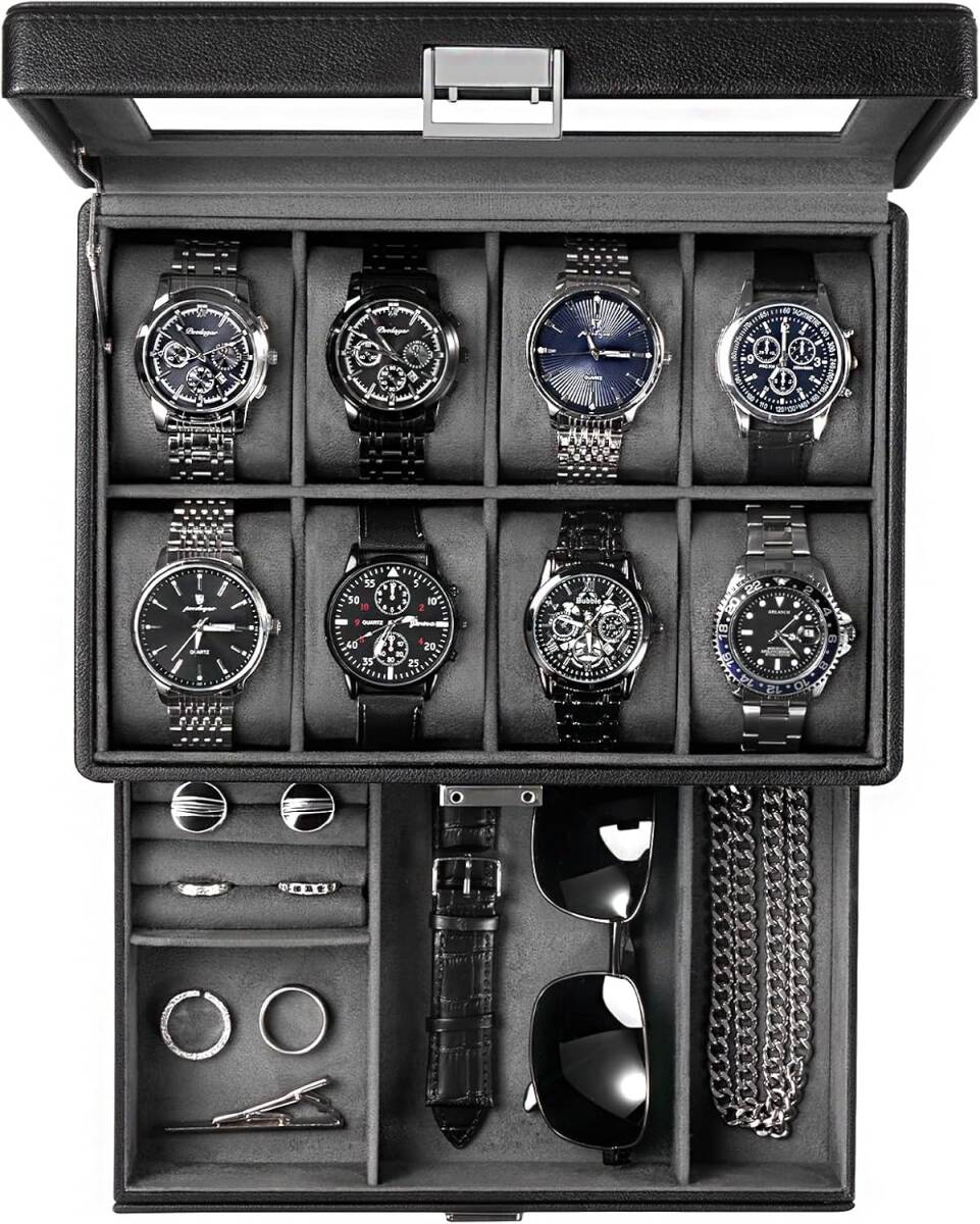 腕時計ケース ウオッチボックス PU製 ブラック 8本 2段式 男女兼用 収納ボックス アクセサリーケース アクセサリー 収納 ディスプレイ