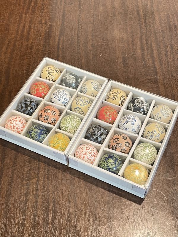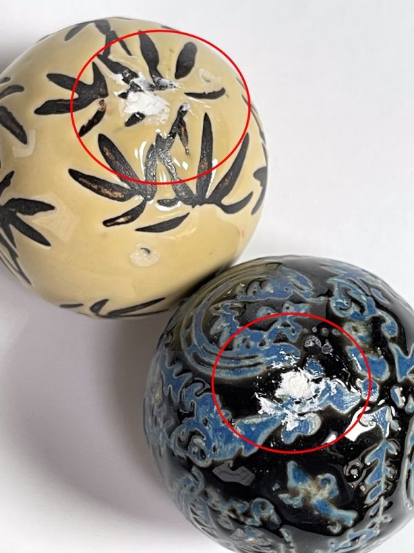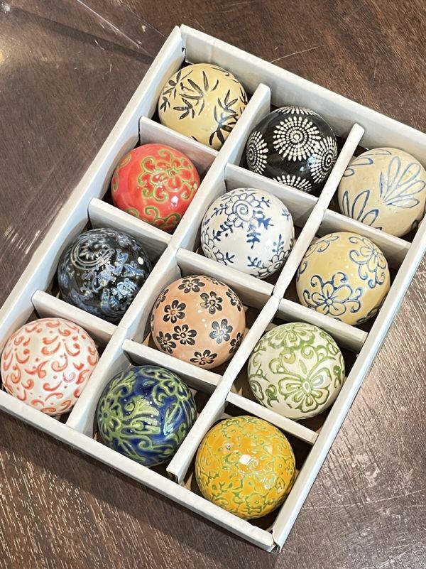 12個セット×2点での出品です。 プカプカ水に浮く不思議な陶器性の浮き玉。 金魚鉢、メダカ鉢などに入れていただいて楽しんでいただくのはもちろん、植物との相性も良くプカプカ漂っている様は大変癒されます。 そのままオブジェとして飾っていただいてもとてもおしゃれです。 ・ハンドメイドのため、サイズや色合いに若干の個体差はあります。 ・小さな白い欠けの様なものがございますが製作上でできるものですので不良ではございません。 |