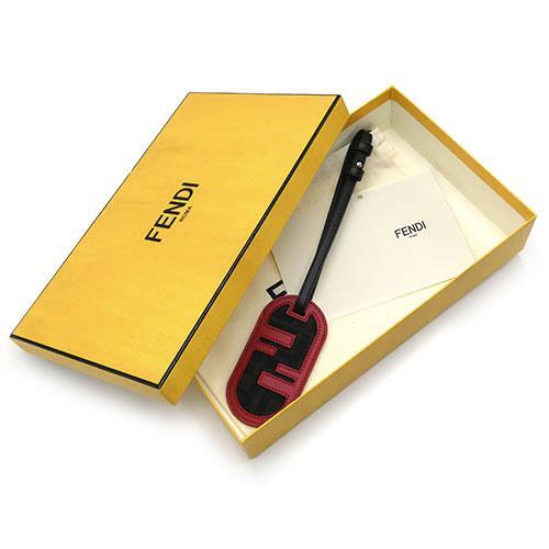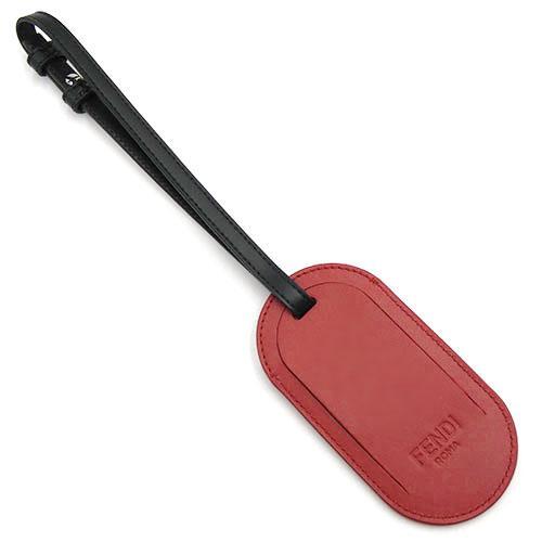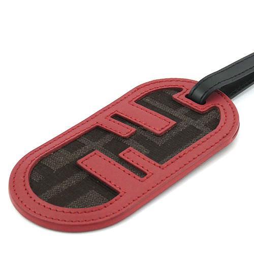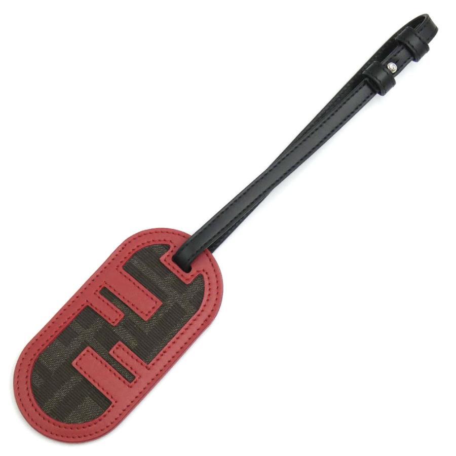 未使用 フェンディ ネームタグ FENDI キャンバスxレザー オーロック ラゲッジタグ ズッカ柄 レッドxブラック レディース メンズ