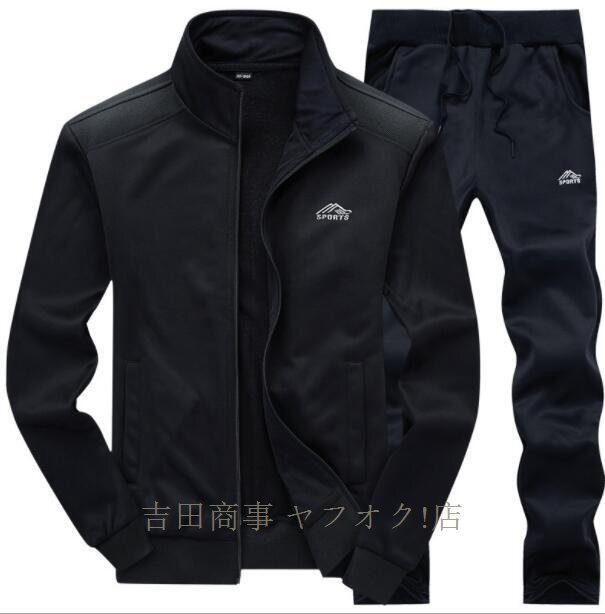 ☆ジャージ メンズ 上下セットアップ スウェット 立ち襟 部屋着 運動着ルームトレーニングスポーツウェア秋冬厚手防寒 お色選択可ブラック