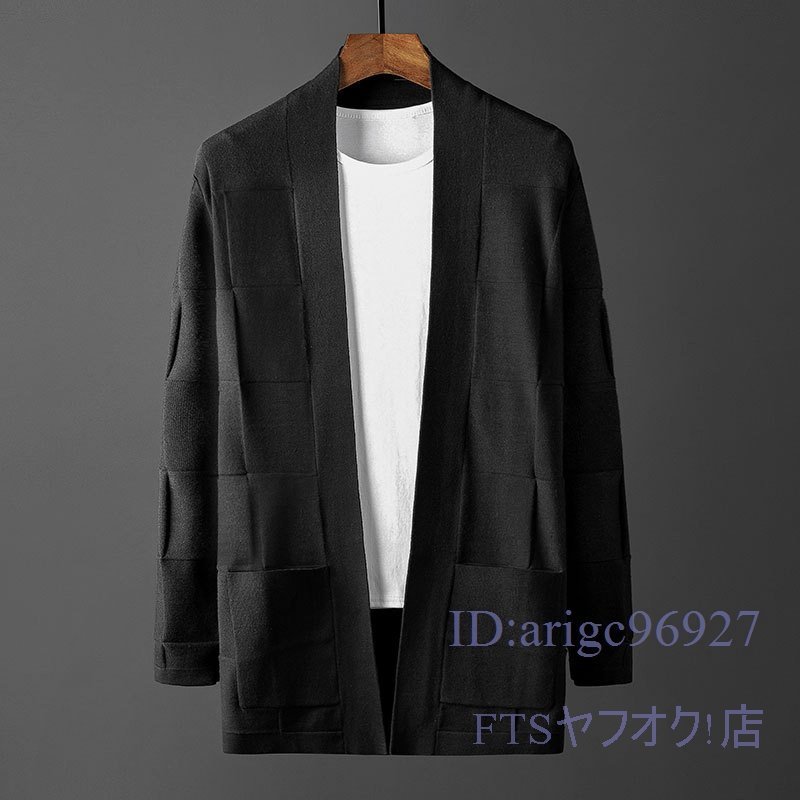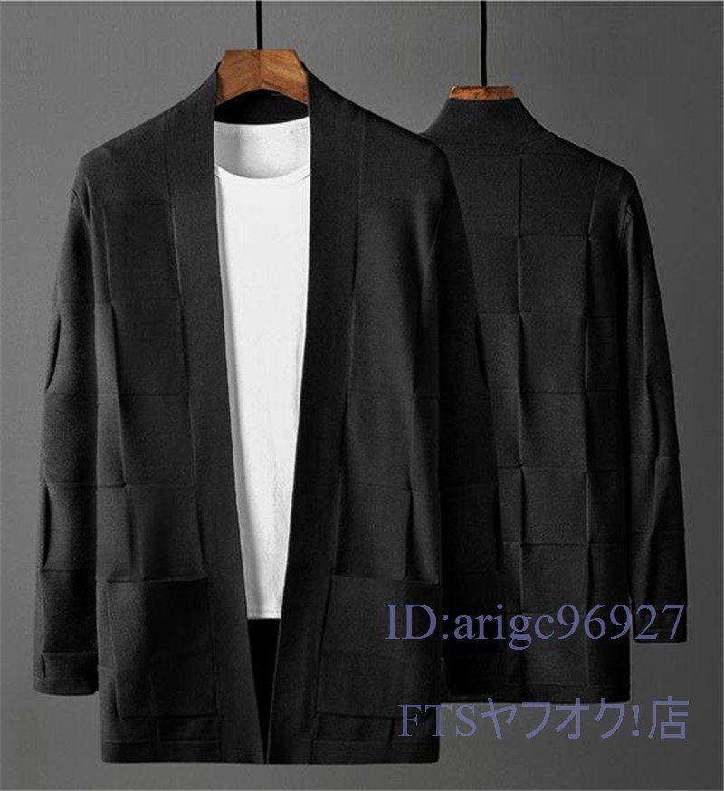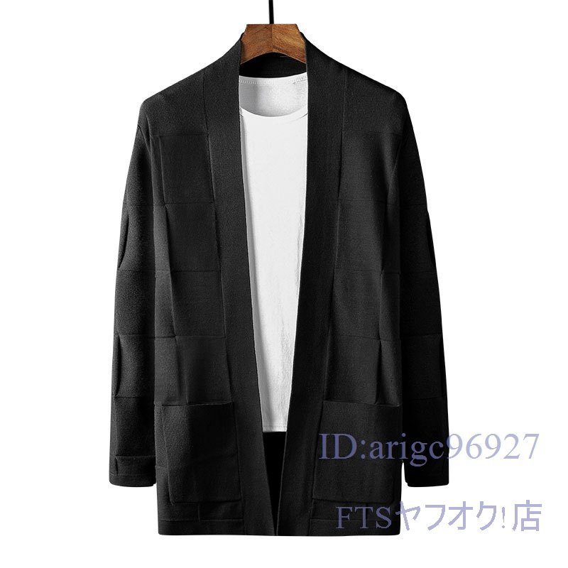 U068☆新品ニットカーデ ニット カーディガン ☆メンズ カーディ 春秋物 無地 トップス カジュアル アウター サイズ選択可 黒 4XL
