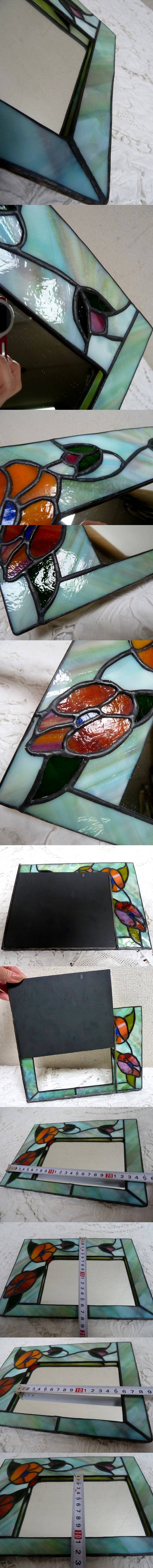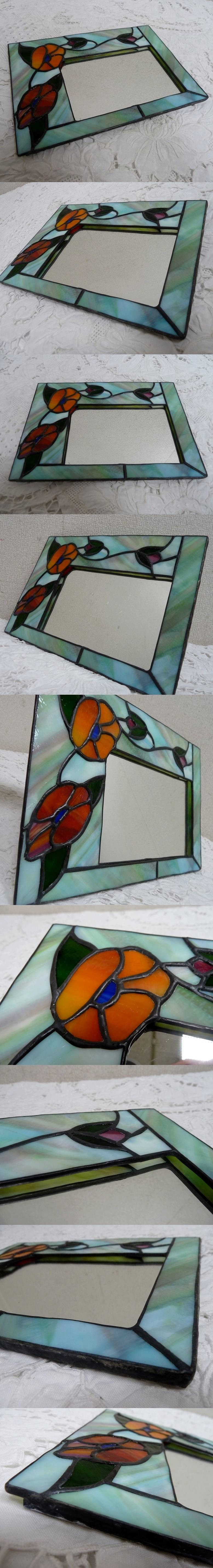 (☆BM)ステンドグラス(0122-33)ガラス ミラー 鏡 オブジェ 置物 横幅25.3×縦18㎝ アート プレート クラッシックレトロ インテリア小物
