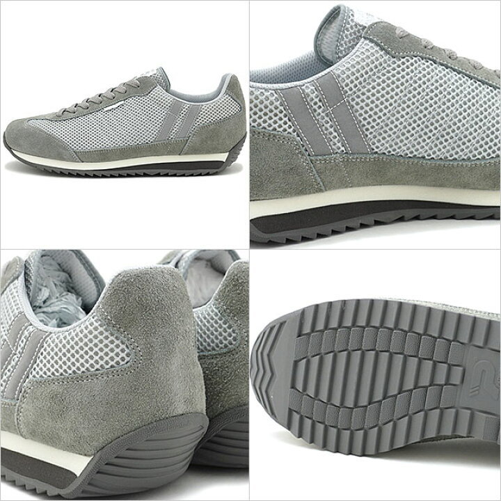 | 商品説明 | 人気定番モデル「マラソン」のアッパーを通気性、伸縮性に優れたメッシュ素材に変更し、履き口に吸湿速乾冷感素材の「クールマックス」を使用しています。 シルバーのメッシュアッパーにシルバーグレーのスエード、グレーのシューレース。リフレクター(反射材)のライン。オフホワイトとフレーのミッドソール、グレーのアウトソール、シルバーグレーのメッシュの履き口。 定価 15400円 |