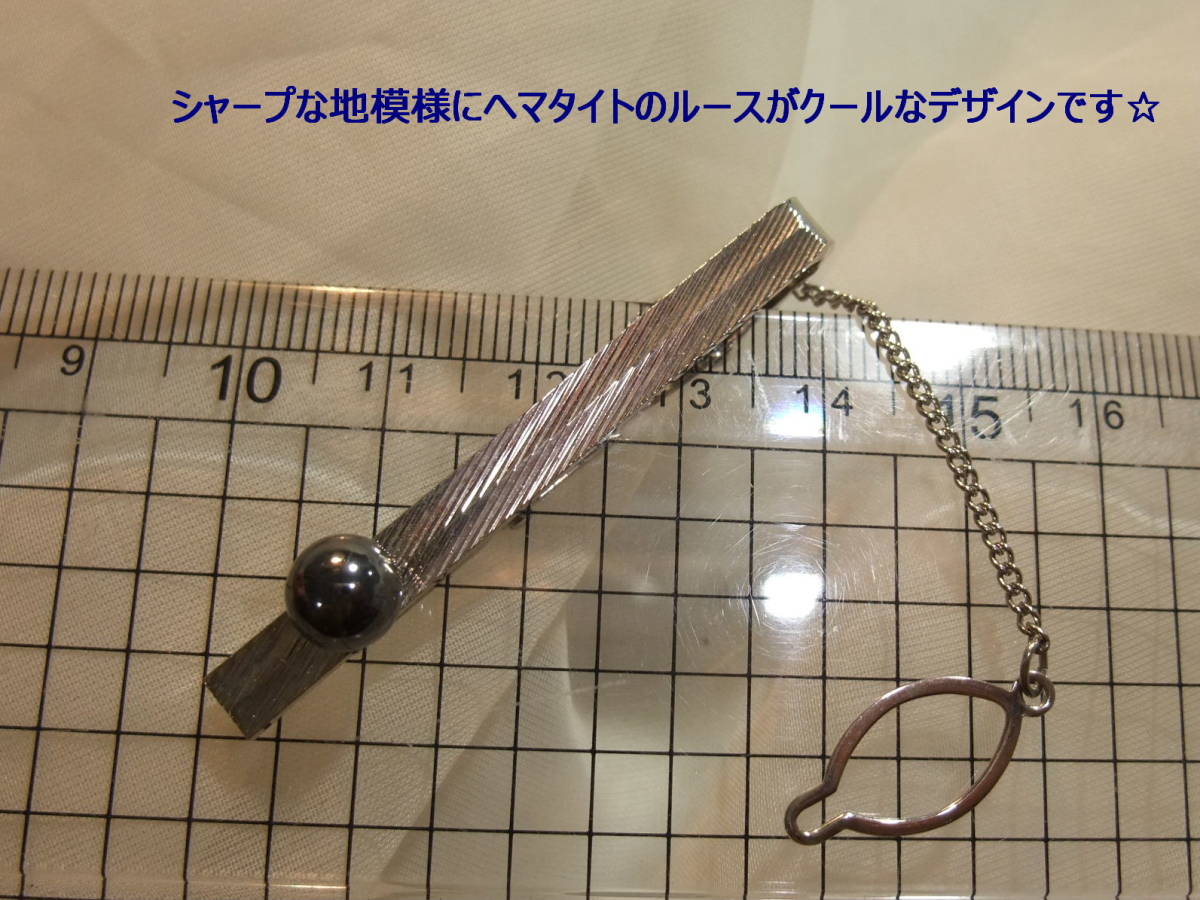 ヘマタイト 天然石付き ルース付き ネクタイピン タイバータイピン ビンテージ系 デザインの良いキレイめレトロタイプデザイン☆395