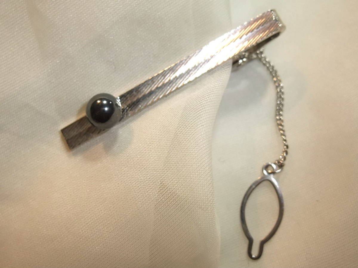ビンテージ系ネクタイピン☆タイバータイピンusedで古いので経年感はありますがデザインの良いキレイめレトロタイプデザインの天然石付(ルース付き)ネクタイピンです☆紳士もの色々同梱可能