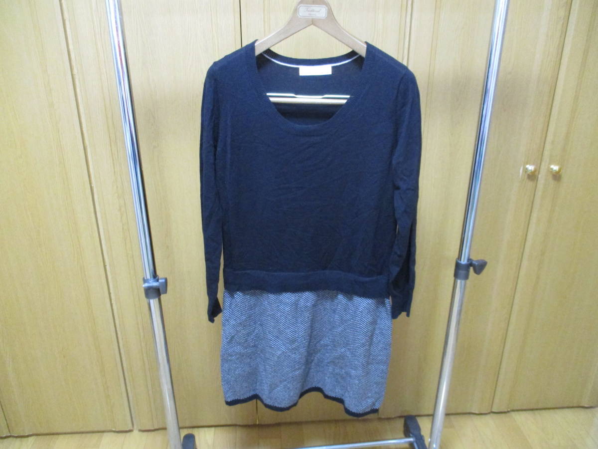 ビームス ライツ★婦人用<長袖丸首・ニットワンピース>★38(M) 黒・グレー