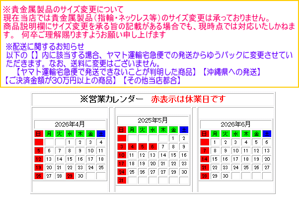 ![]() お安く御提供できる品物を出来るだけ多く出品していく予定ですのでよろしくお願いいたします。 ご不明点等ございましたらオークションID、品名を記載のうえこちらの メール又は質問欄よりお気軽にお問い合わせください。 店名:エタニティー 古物商許可証 北海道公安委員会 釧(古)第405号 住所:〒085-0035 北海道釧路市共栄大通5-1 電話番号:0154-64-5783 営業時間 9:30 ~ 18:00 定休日 日曜・祝日 | |