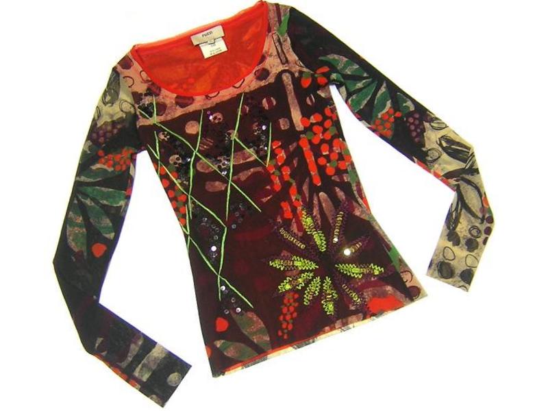FUZZI のイタリア製、 スパンコール刺繍チュールカットソーでございます。 伸縮性あり/2枚仕立て | |