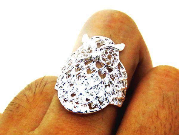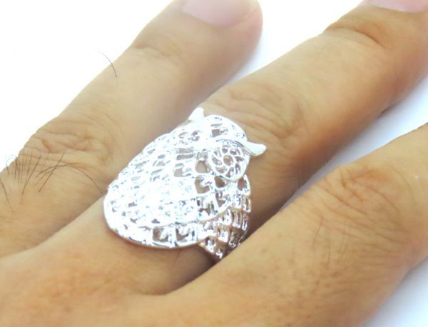 人気のフクロウ ミミズク指輪! 日本国内より安心発送! 素材 合金 サイズ 日本サイズ約16号 金属アレルギーの方、神経質な方はご遠慮下さい。 透かし彫りで細かく優れた造形です。