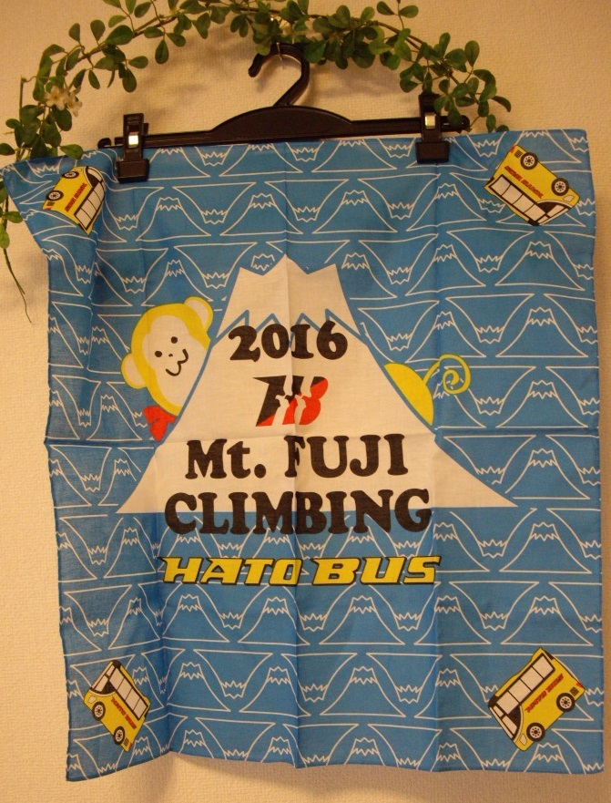 超レア!~はとバス~のバスと富士山とサルの絵柄入りハンカチバンダナです。