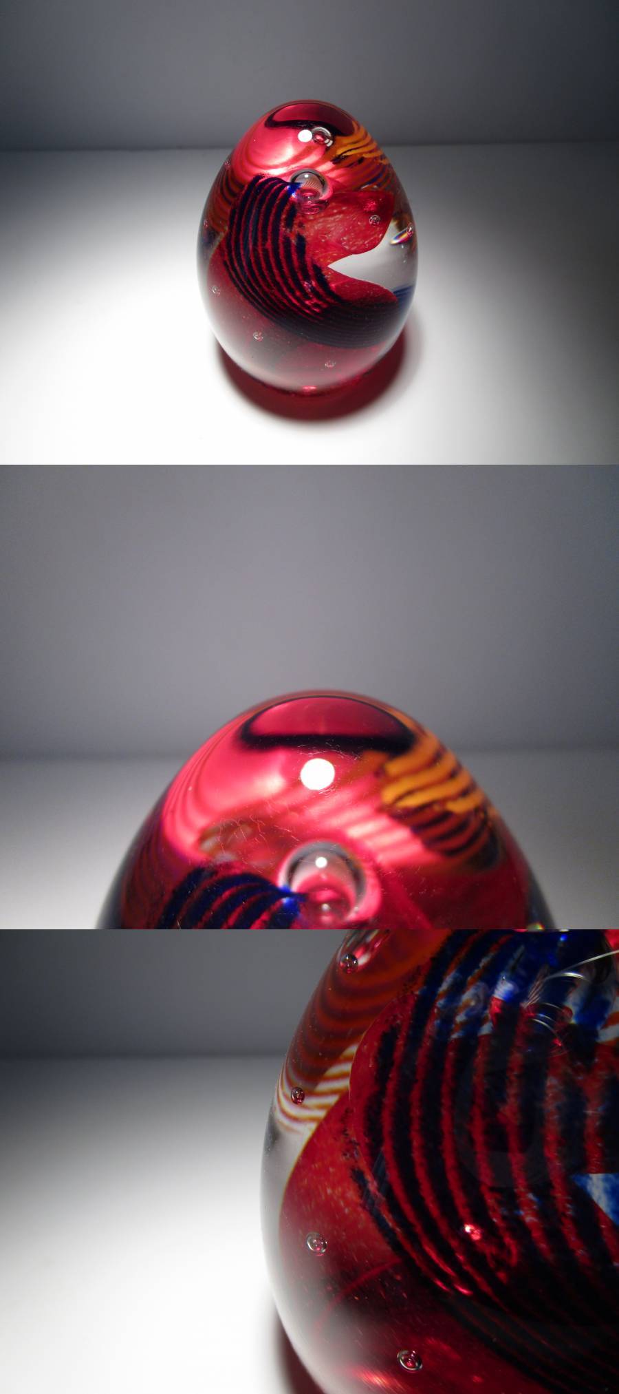 ケイスネスの作品の中でも大き目の品物でペーパーウエイトというよりオブジェのような1品。色合い、デザインともに手の込んだしつらえを施された完成度の高い作品です。単体で飾っておくだけでも楽しめる存在感のある品物で 出回る機会の少なめの限定品なのでお好きな方はぜひご検討ください。