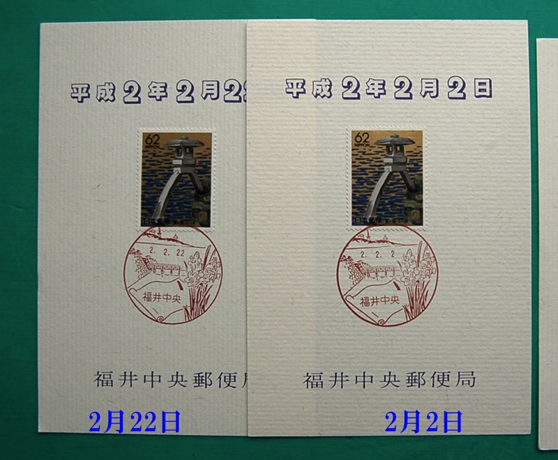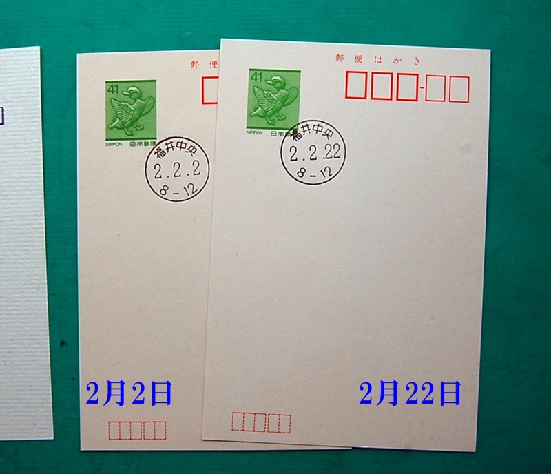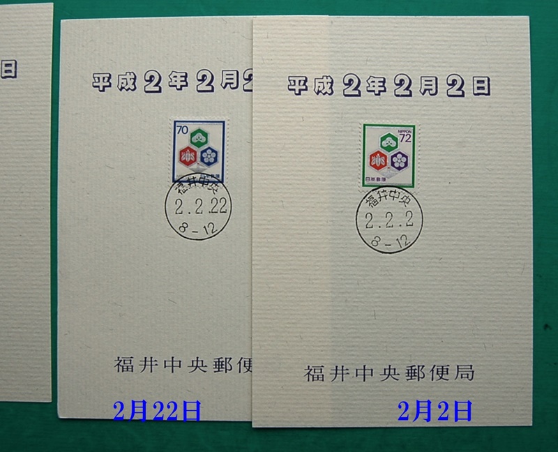 19枚 ゾロ目スタンプ 記念ハガキ・切手 平成1年11月1日 11月11日  平成2年2月2日 2月22日 福井中央郵便局
