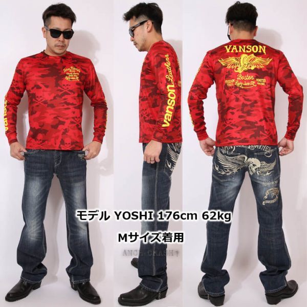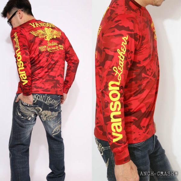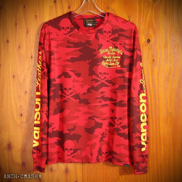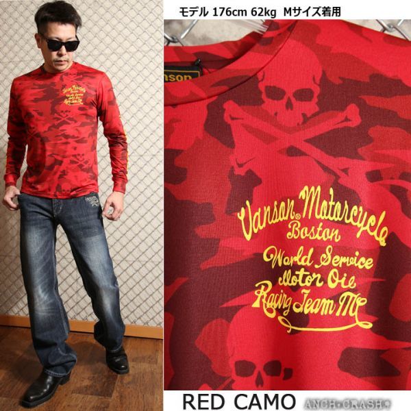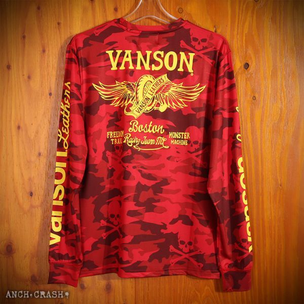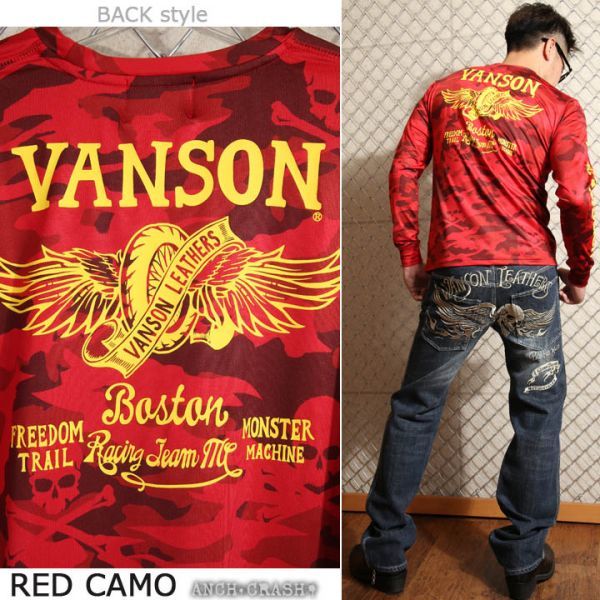 VANSON ドライ長袖Tシャツ ACVL-902 レッドカモ【XXLサイズ】バンソン 当店別注 吸汗速乾 抗菌防臭 UVカット ハーレー バイカー