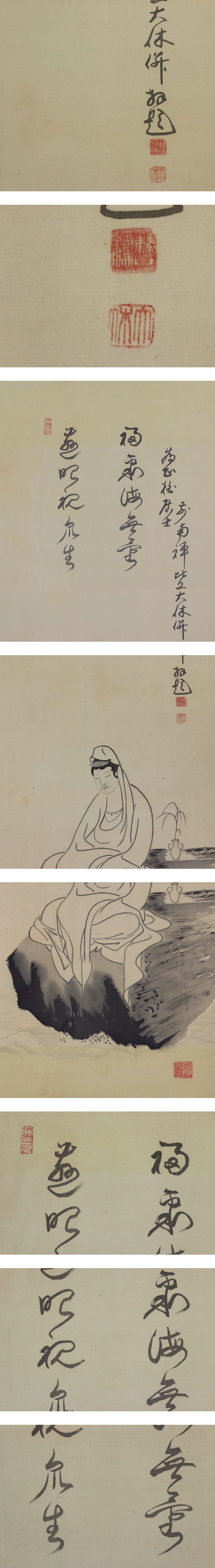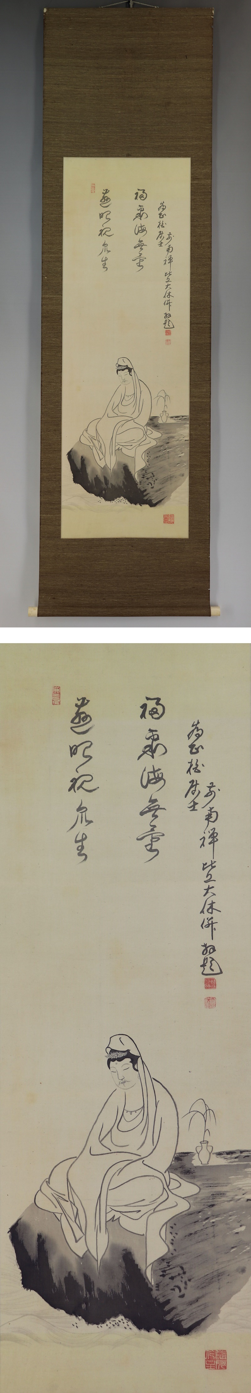 | №2009053 希少【真作】南禅寺 大休義勇【岩上観音】◆絹本◆合箱◆掛軸 | |