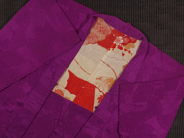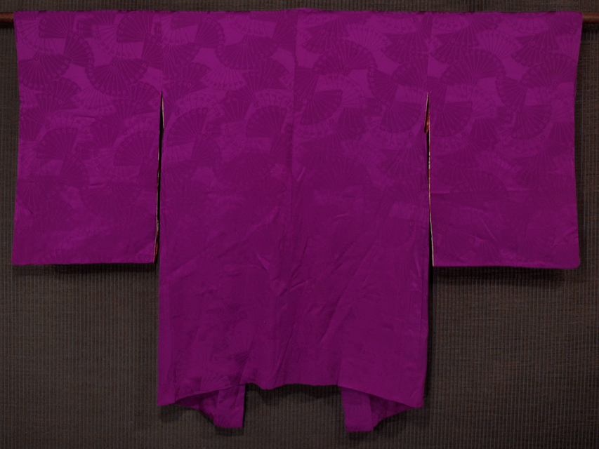【アンティーク】紅紫色無地 檜扇散らし文 紋綸子縮緬 羽織 丈89 TAJJ04002風楽 |